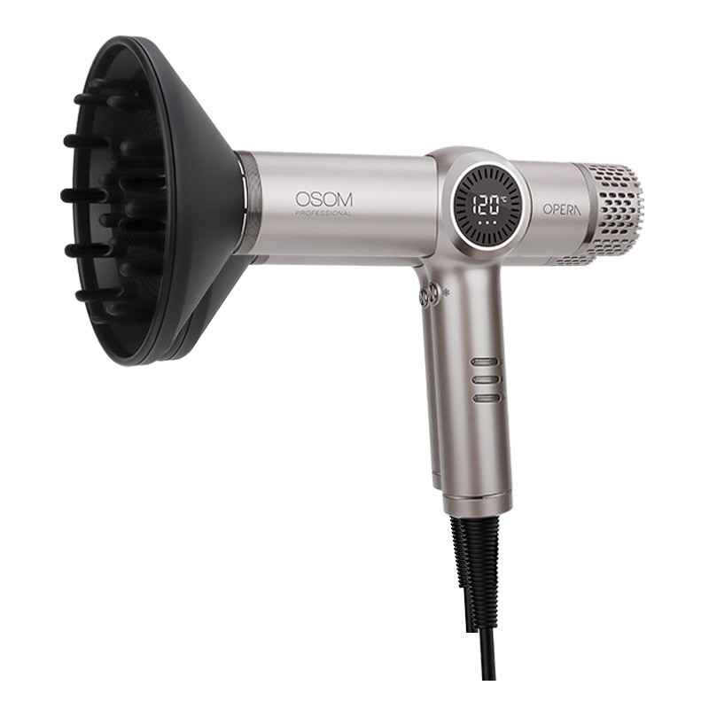 Pradžia Plaukams Elektros prietaisai Plaukų džiovintuvai Plaukų džiovintuvas OSOM Professional OPERA BLDC High Speed Hair Dryer OSOMPF07CH, 1500 W, šampaninės spalvos